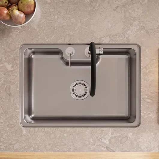 Prática e versátil, a cuba DocolMassima é garantia de funcionalidade e eficiência na cozinha. Fabricada em aço inoxidável 304 (alto teor de cromo e níquel) com acabamento escovado, seu desenho inteligente além de oferecer excelente área útil, permite a instalação embutida ou sobreposta e a disposição confortável de um misturador monocomando e de um dispensador de detergente. Seus acessórios exclusivos são opcionais: cesto escorredor aramado e tábua de corte em madeira teca que encaixam-se perfeitamente em ambos os lados da cuba, facilitando as tarefas do dia a dia; dispensador de detergente, prático e resistente, despeja a quantidade ideal do produto e resiste a 150 mil ciclos de funcionamento e lixeira com duas opções de tampa – redonda ou quadrada.